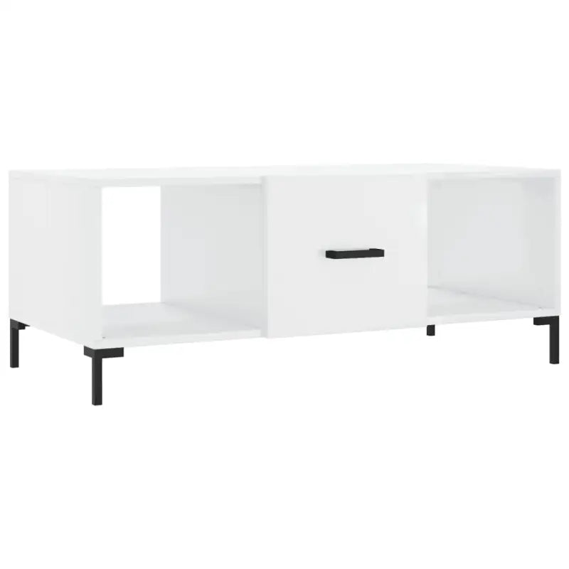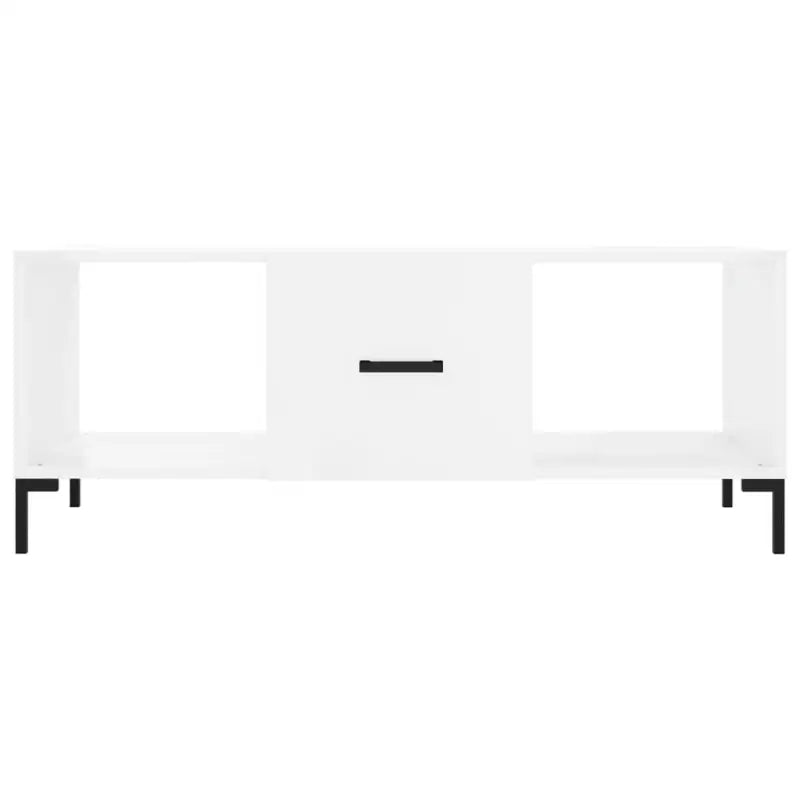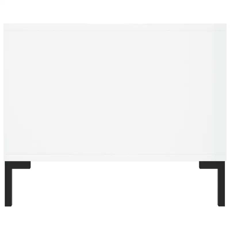 Elegante salontafel met bewerkt hout en ijzeren poten in hoogglans wit