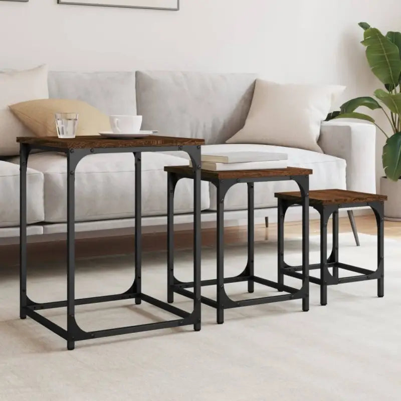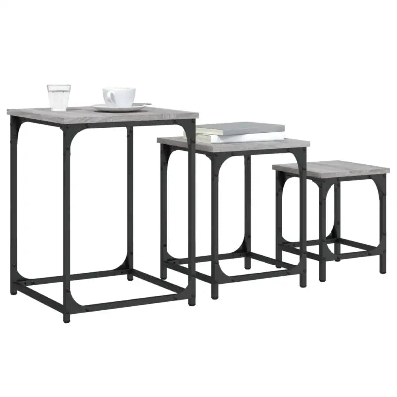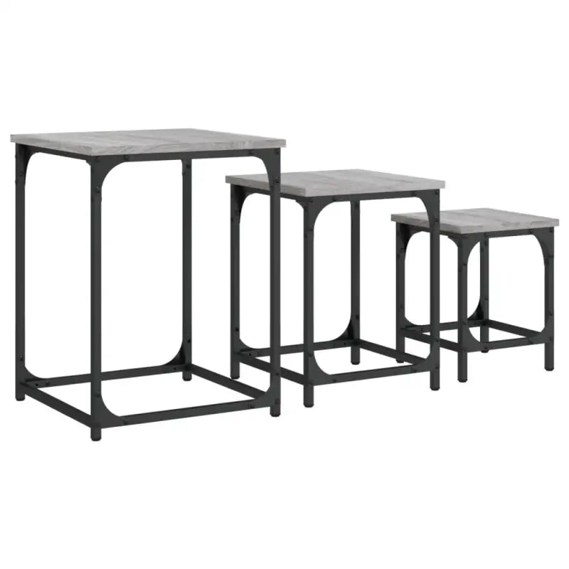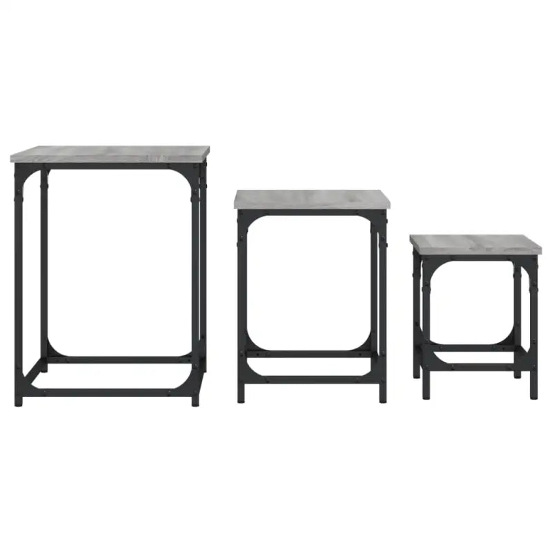 De 3 in elkaar passende salontafels zijn de perfecte oplossing voor kleine appartementen en elk gebied met beperkte ruimte. Dankzij het industriële ontwerp geeft deze salontafelset een chique tintje aan je woon- of slaapkamer of kantoor.