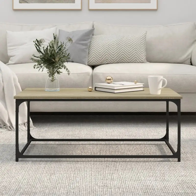 Klassieke salontafel met bewerkt hout en ijzeren frame voor elegantie