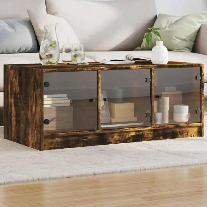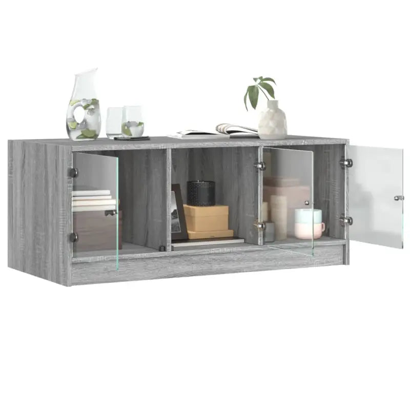 Salontafel in Grijs Sonoma eiken met glazen deuren en opbergruimte