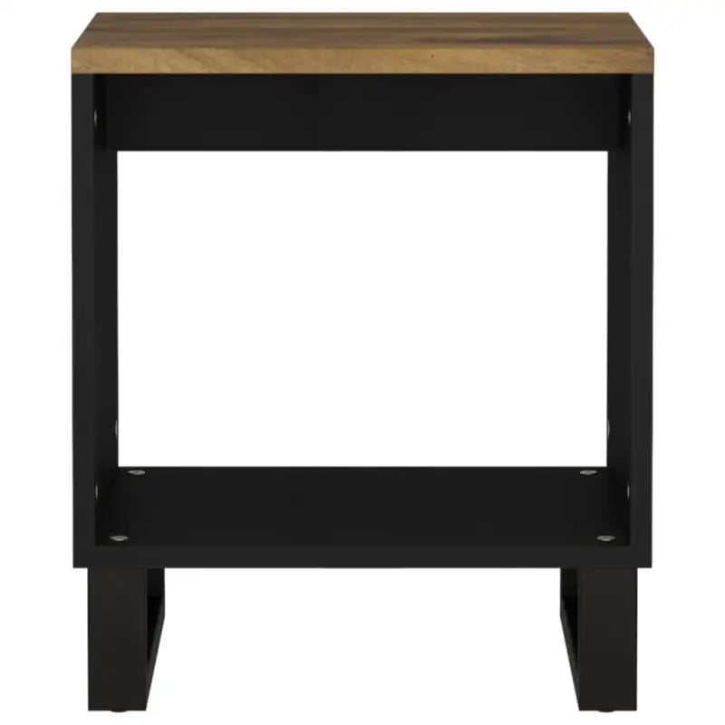 Salontafel van massief mangohout met metalen poten en bewerkt hout
