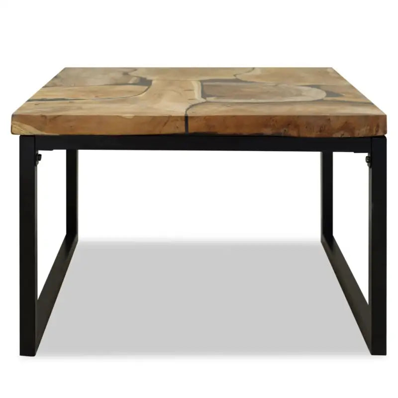 Unieke salontafel van echt teakhout met zwarte hars voor een rustieke uitstraling
