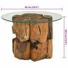 - Materiaal: massief teak drijfhouten basis en tafelblad van gehard glas