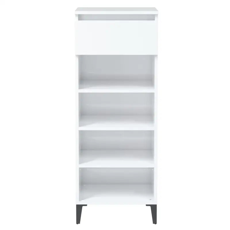 Schoenenrek in hoogglans wit van bewerkt hout voor schoenen geordend