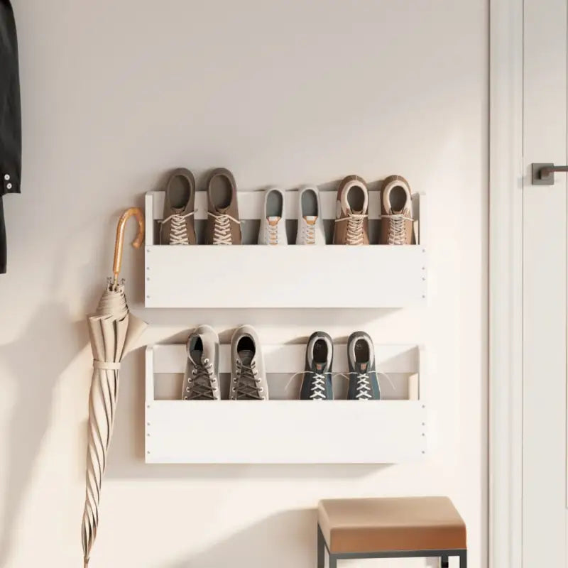 Houd je schoenen geordend en altijd binnen handbereik met deze wandgemonteerde, houten schoenenrekken!