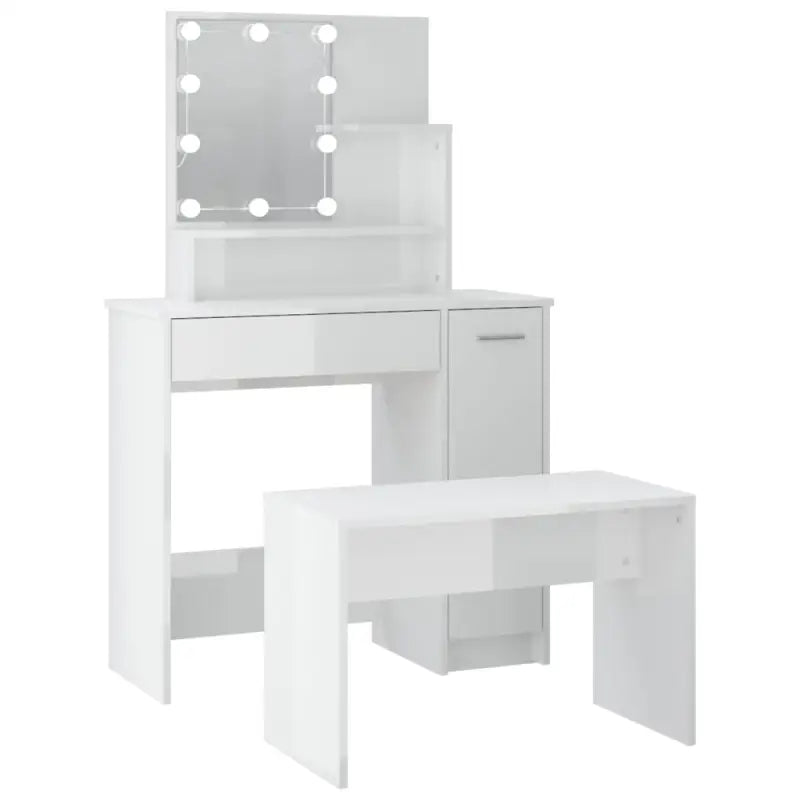 Hoogglans witte slaapkamerkaptafel bewerkt hout binnen handbereik