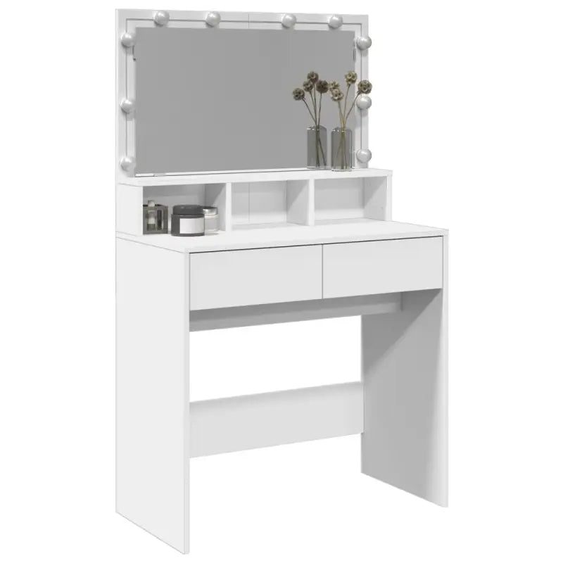 • LED-verlichting: de kaptafel beschikt over LED-verlichting met USB, waardoor het eenvoudig is om tussen warm- en koudwit te wisselen. De LED-lampen bevinden zich rondom de spiegel om je schoonheid te verlichten.