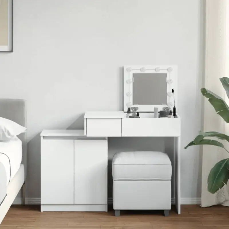 • LED-verlichting: de kaptafel beschikt over LED-verlichting met USB, waardoor het eenvoudig is om tussen warm- en koudwit te wisselen. De LED-lampen bevinden zich rondom de spiegel om je schoonheid te verlichten.