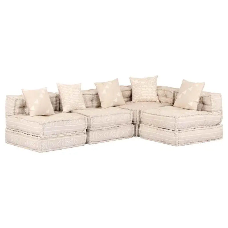 Deze veelzijdige bank heeft een modulair ontwerp. Je kunt de modulaire secties in verschillende configuraties eenvoudig combineren en ze veranderen in een chaise longue, fauteuil of poef - wat je maar wilt! Dankzij de katoenen, stoffen bekleding en de dikke voering is de bank gemakkelijk te onderhouden en extra zacht. Deze modulaire bank is ook ideaal om op de veranda van het weer te genieten.