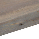 - Materiaal: massief acaciahout met een grijze afwerking (tafelblad) en gepoedercoat ijzer (poten)