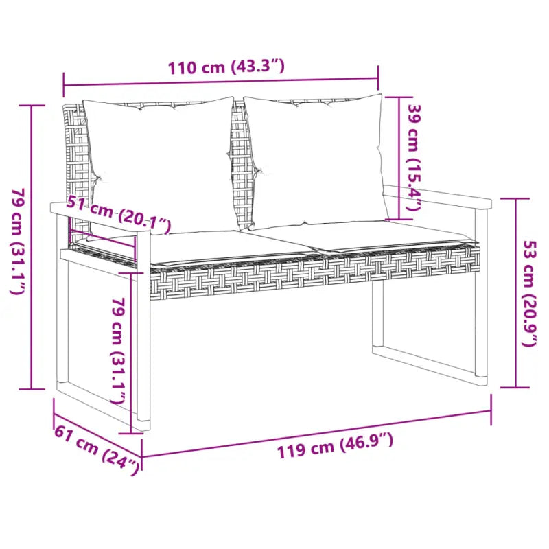- Afmetingen zitting: 110 x 51 cm (B x D)