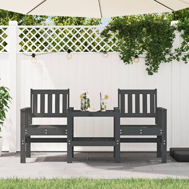 vidaXL Tuinbank met tafel 2-zits massief grenenhout zwart