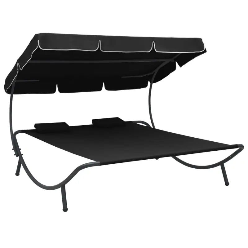 Dubbele Tuinbank met Kussens en Luifel voor Buitengebruik