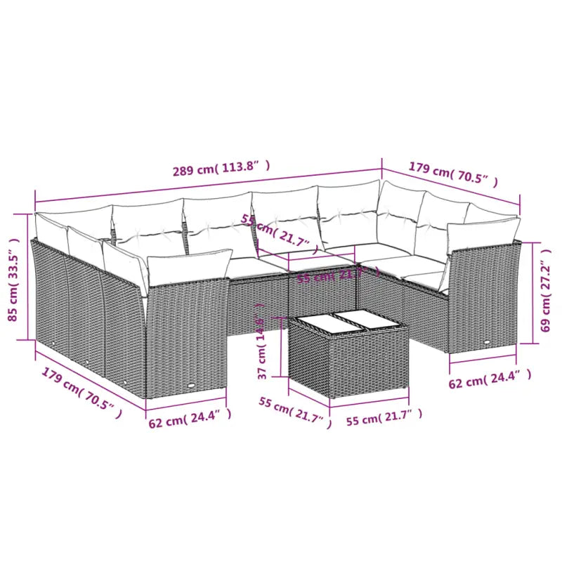 - Totale afmetingen van de bank: 289 x 179 x 69 cm (B x D x H)