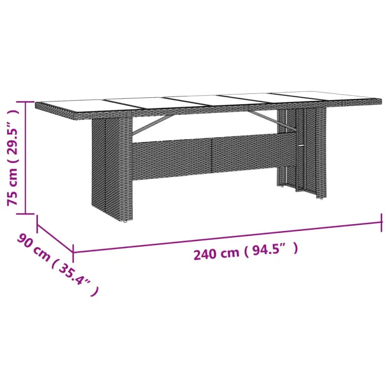 - Glazen tafelblad: het blad van de tuintafel is gemaakt van sterk en duurzaam gehard glas, waardoor het gemakkelijk schoon te maken is met een vochtige doek. Het voegt ook een vleugje elegantie toe aan je buitenruimte.