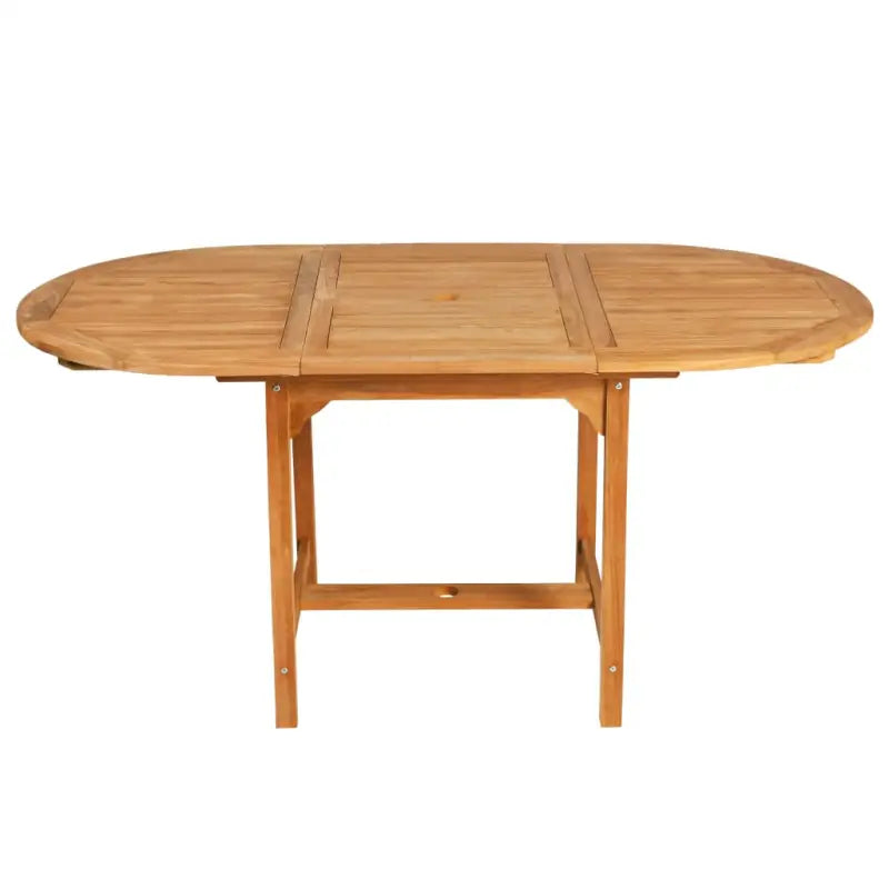 - Materiaal: fijn geschuurd hard teakhout met waterbasisafwerking
