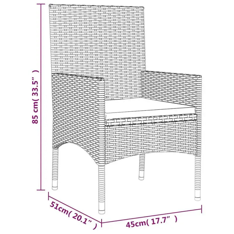 - Materiaal: PE-rattan, gepoedercoat staal en glas