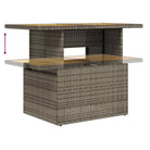 - Verstelbaar tafelblad: het tafelblad kan worden opgetild om de tafel hoger te maken, waardoor de tuintafel verandert van salontafel in eettafel. Hij is perfect om gasten te ontvangen of buiten te eten.