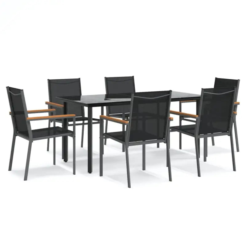 Tuinset met gehoard glas en zwart gepoedercoat staal voor zomerdagen
