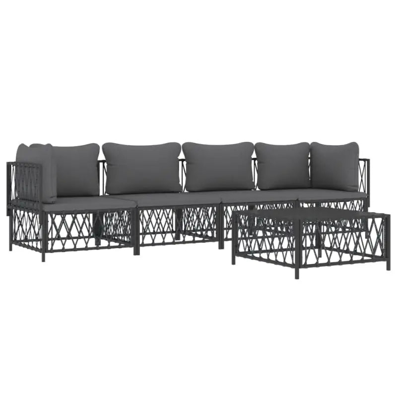 Tuinset met geweven stof en antraciet materiaal voor buitengebruik