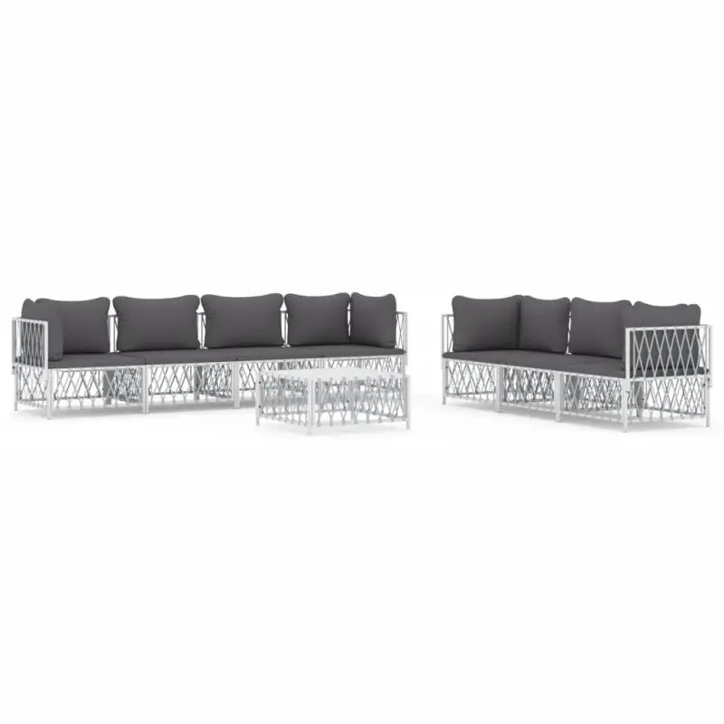 Tuinset met geweven stof wit materiaal en gepoedercoat staal