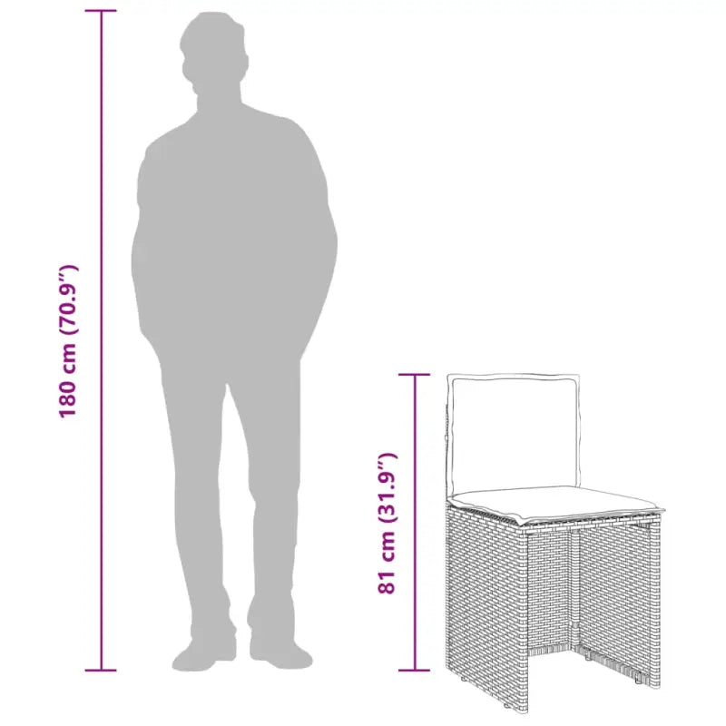 • Compact op te bergen: de tuinstoelen kunnen netjes onder de tafel worden geschoven, waardoor ze ruimtebesparend kunnen worden opgeborgen.