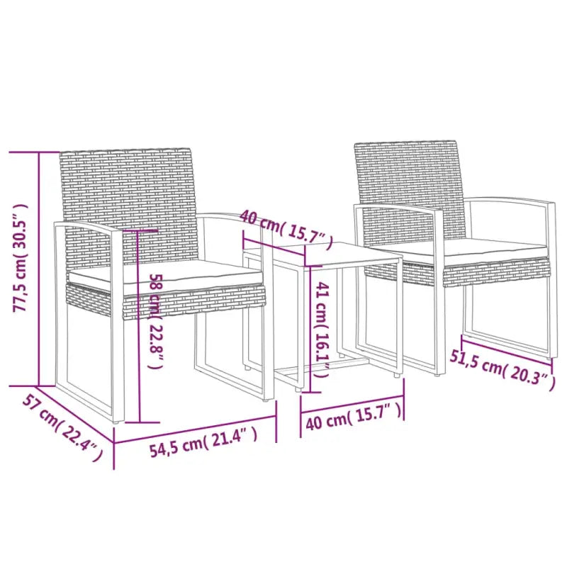 Tuinset van gepoedercoat staal met zwarte afmetingen voor uw buitenruimte