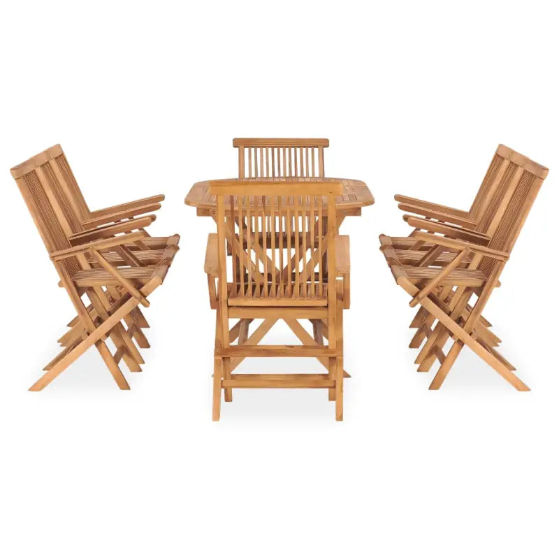 Dit teakhouten meubel is gemaakt van extreem duurzaam hard teakhout en is gewaterd, in de oven gedroogd en fijn geschuurd om het een zeer gladde uitstraling te geven. Teakhout staat bekend om zijn uitzonderlijke sterkte en weerbestendigheid, waardoor het veel geschikter is voor tuinmeubelen dan elke andere houtsoort. Teakhout is de perfecte keuze als je een duurzaam tuinmeubel wilt aanschaffen. De eettafel en de stoelen kunnen ingeklapt worden om ruimte te besparen wanneer ze niet worden gebruikt.