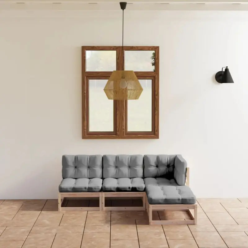 De loungeset is gemaakt van massief grenenhout, waardoor hij stevig en stabiel is. Deze set heeft een massieve constructie en vergt weinig onderhoud. De kussens zorgen voor extra comfort. De meubelset geeft je buitenruimte een vleugje rustieke charme.