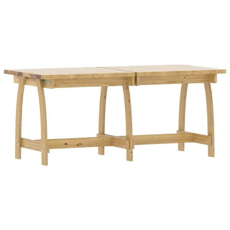 Deze houten buitentafel is gemaakt van groen geïmpregneerd grenenhout en is zeer stevig, duurzaam en corrosiebestendig. De terrastafel is een ideale keuze voor ontspannende momenten in een romantische tuin, bij een idyllische vijver of om te dineren met familie en vrienden. Houd er rekening mee dat hout een natuurproduct is en onvolkomenheden kan vertonen.