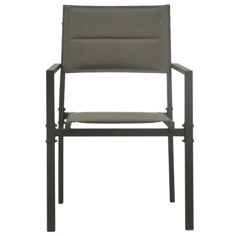 Deze tuinset heeft een gepoedercoat stalen frame, waardoor de tafel en stoelen stabiel en duurzaam zijn. De comfortabele stoelen zijn bekleed met een sterke en makkelijk te reinigen textileen stof. De stoelen zijn stapelbaar om ruimte te besparen wanneer ze niet worden gebruikt.