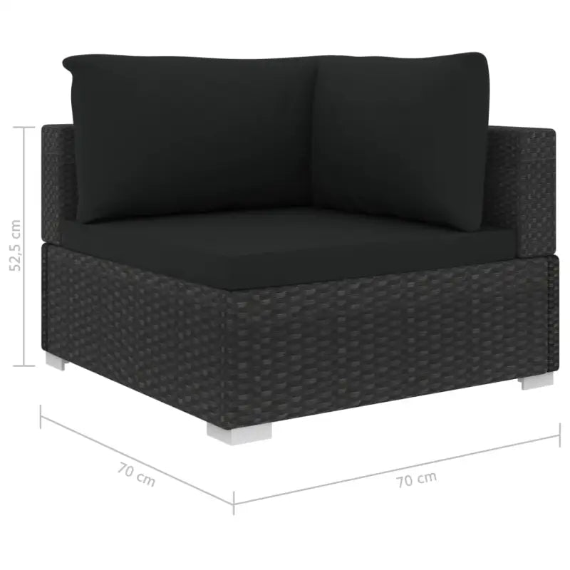 Dankzij het weer- en waterbestendige PE-rattan is de loungeset gemakkelijk schoon te maken, slijtvast en geschikt voor dagelijks gebruik. De tuinbankenset heeft een stevig frame van duurzaam gepoedercoat staal. De set is ook lichtgewicht en modulair, waardoor alle onderdelen gemakkelijk kunnen worden verplaatst en de set aan elke situatie aangepast kan worden. De dikke, verwijderbare kussens zijn erg comfortabel.