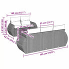 - Totale afmetingen 2-zitsbank: 140 x 62 x 69 cm (B x D x H)