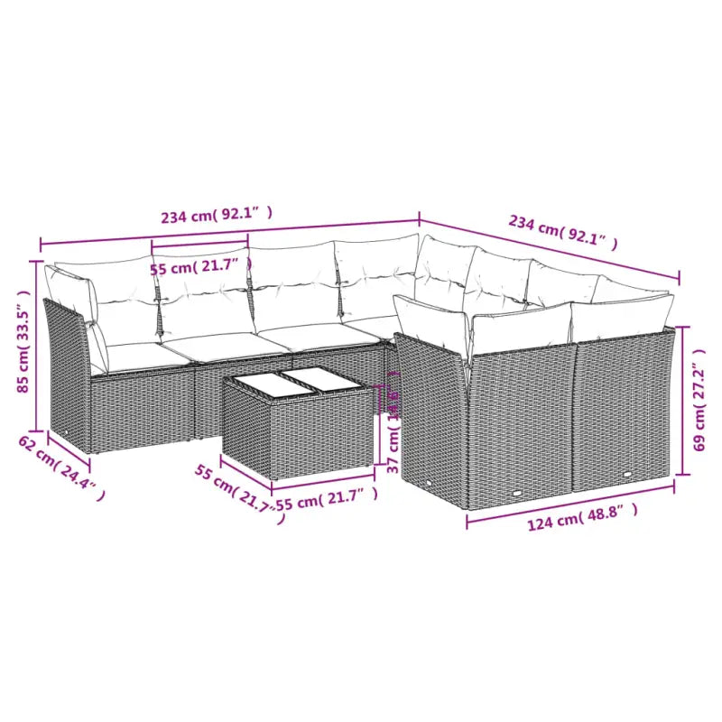 • Totale afmetingen bank: 234 x 234 x 69 cm (B x D x H)