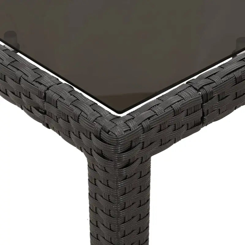 - Glazen tafelblad: het blad van de tuintafel is gemaakt van sterk en duurzaam gehard glas, waardoor het gemakkelijk schoon te maken is met een vochtige doek. Het voegt ook een vleugje elegantie toe aan je buitenruimte.