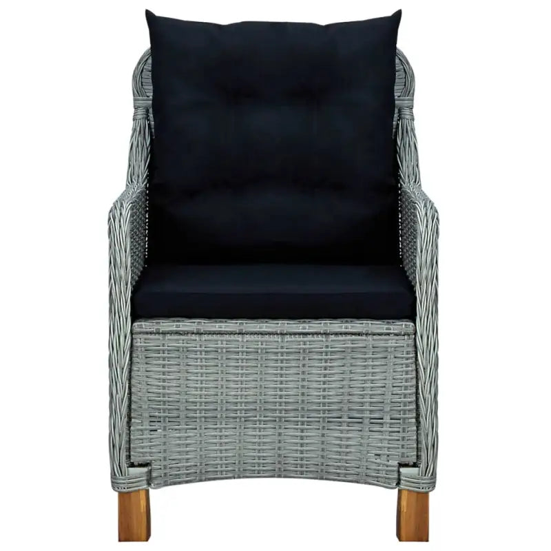 De buitenstoel, met een gepoedercoat stalen frame bedekt met rond PE-rattan, is stevig en gemakkelijk schoon te maken. De dik gevoerde zit- en rugkussens bieden extra comfort tijdens het loungen. De kussenhoes heeft een rits waardoor de hoes afneembaar en wasbaar is. Bovendien dragen de massief acaciahouten poten bij aan de stevigheid en stabiliteit. Deze tuinstoelen zijn gemakkelijk te verplaatsen door de lichtgewicht constructie.