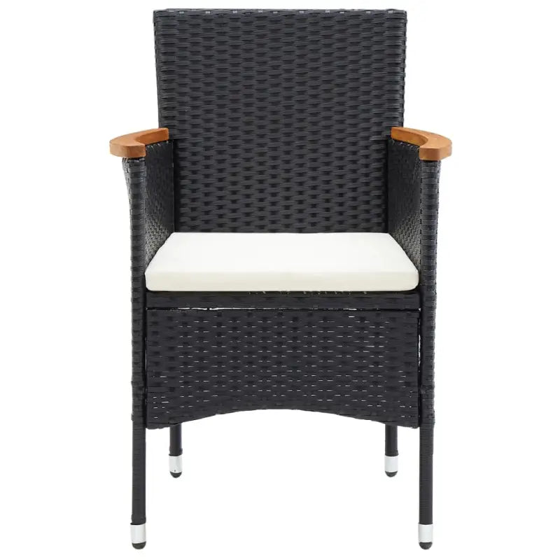 Het stevige stalen frame is omwikkeld met weerbestendig PE-rattan waardoor deze duurzame tuinstoelenset roest- en schimmelbestendig is. Deze tuinstoelenset, ontworpen met gebogen rugleuning en armleuning, heeft een ergonomische vorm voor maximaal comfort. De armleuningen zijn prachtig gedecoreerd met massief acaciahout en een natuurlijke olieafwerking, wat een gevoel van rustieke charme geeft. Daarnaast bieden de dik gevoerde kussens ultiem zitcomfort.