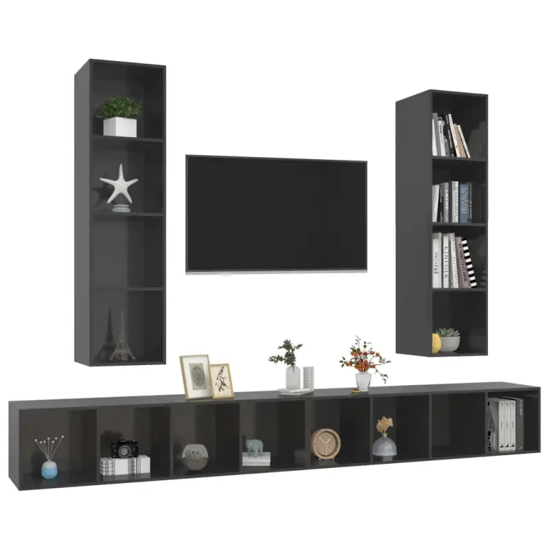 Hoogglans grijs TV-meubel met bewerkt hout voor volop opbergruimte