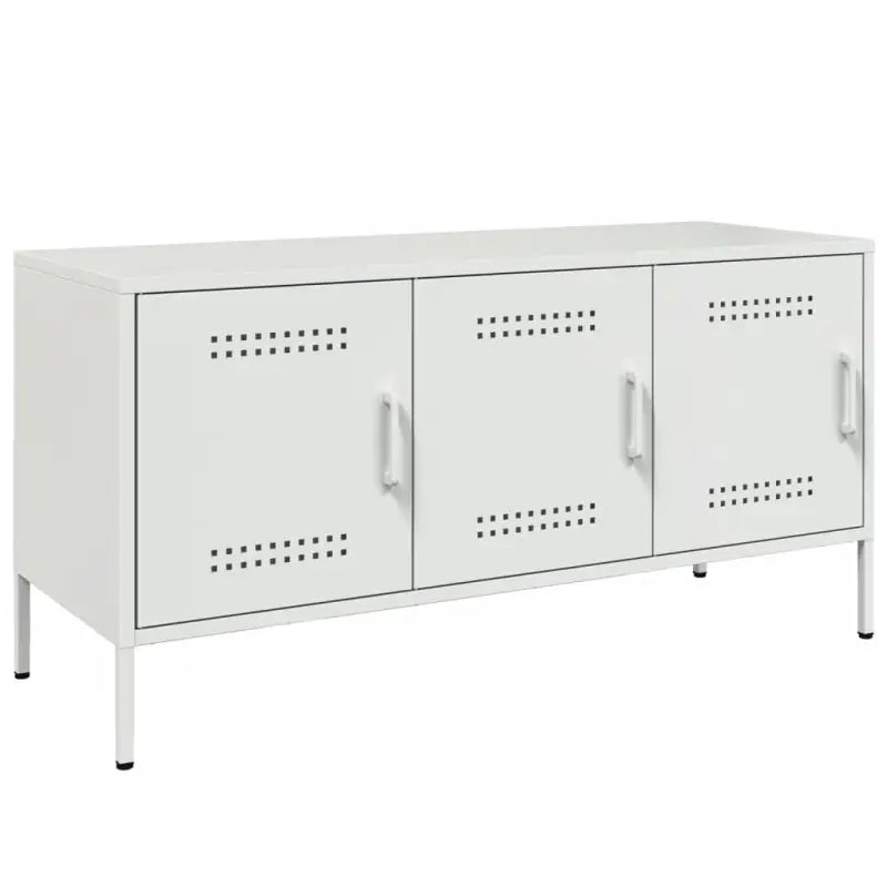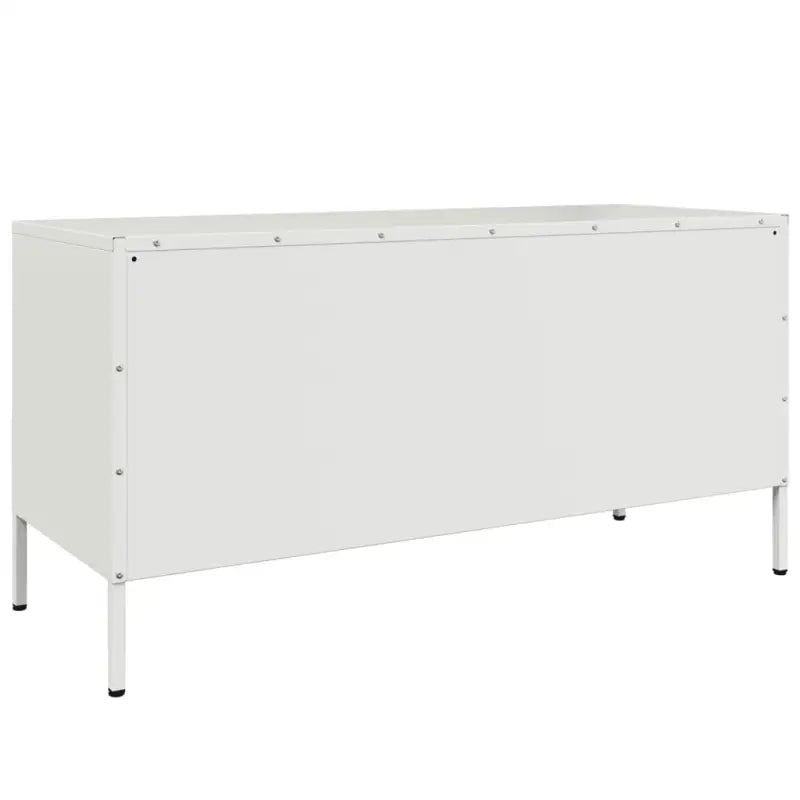 Dit tv-meubel met een industriële stijl is een tijdloze toevoeging aan je woon- of slaapkamer.