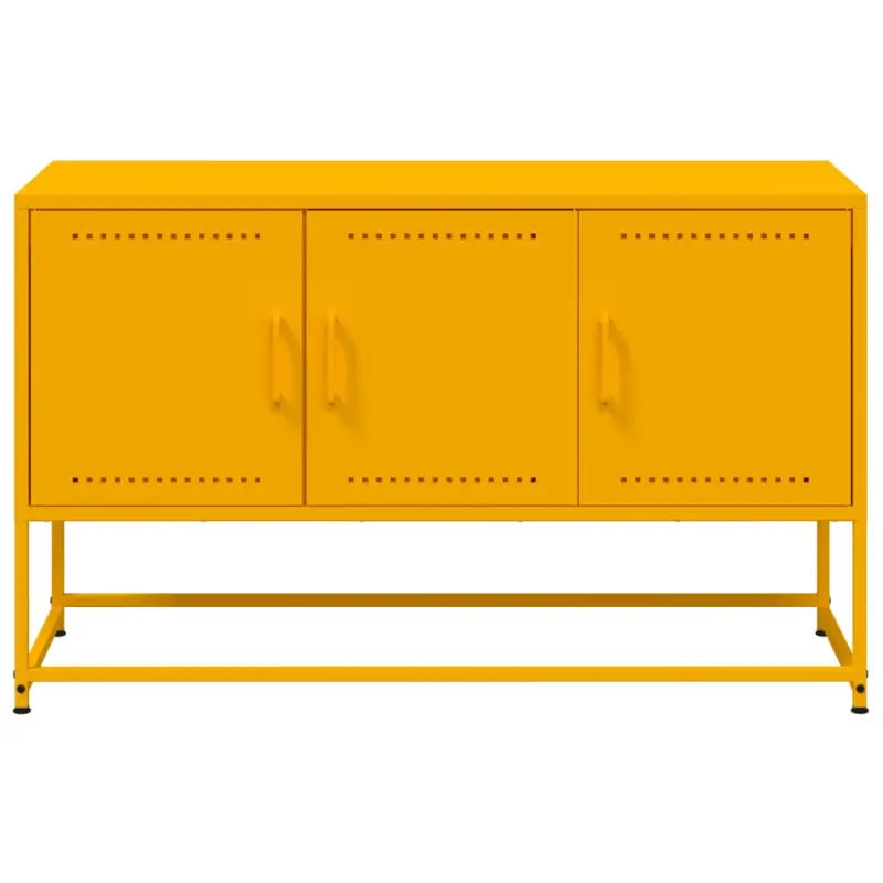 Dit tv-meubel met een industriële stijl is een tijdloze toevoeging aan je woon- of slaapkamer.