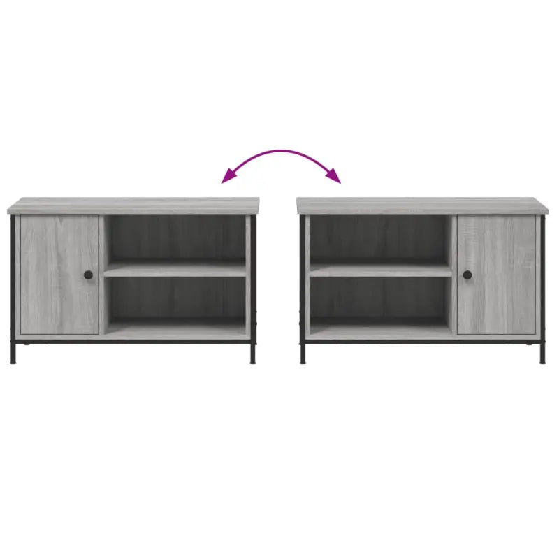 Klassieke Tv-meubel met ijzeren poten en bewerkt hout in grijs sonoma