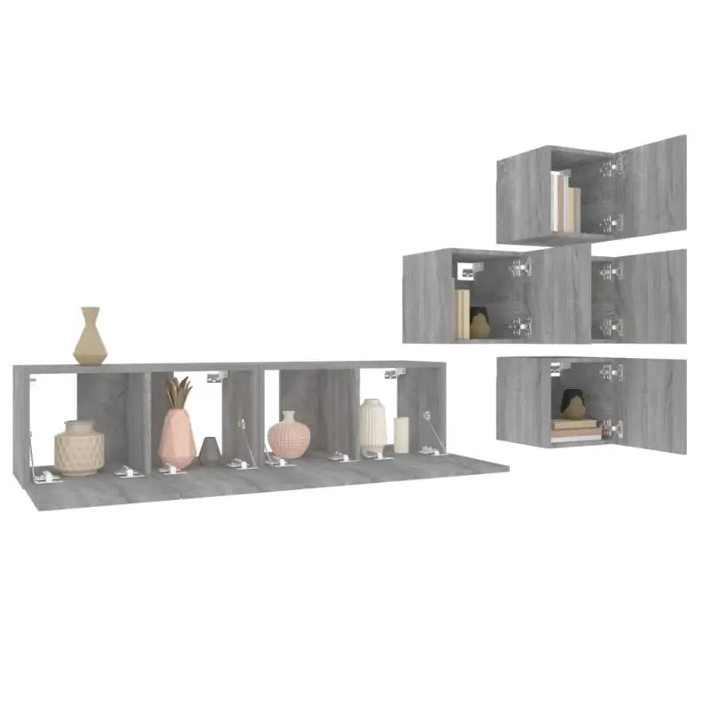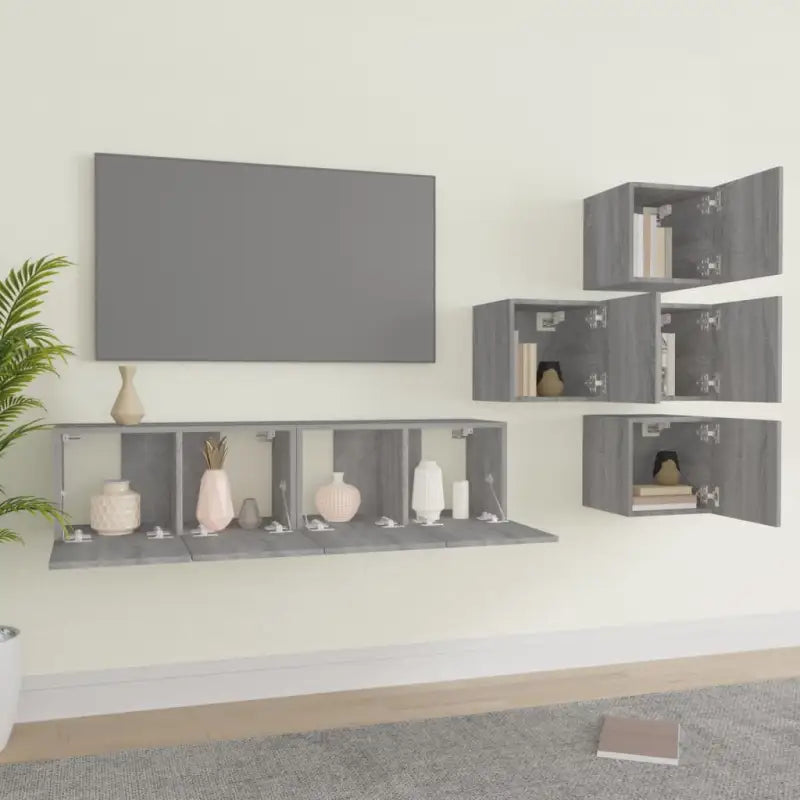 Klassieke tv-meubels in grijs sonoma met bewerkt hout ontwerp
