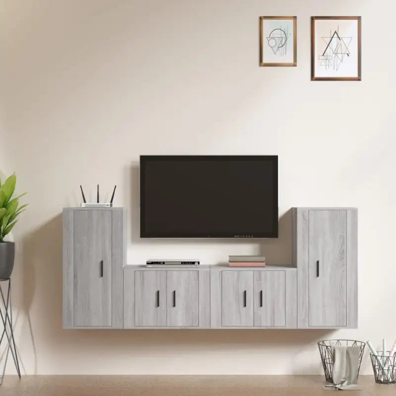 Klassieke Tv-meubels in grijs sonoma met bewerkt houtstijl
