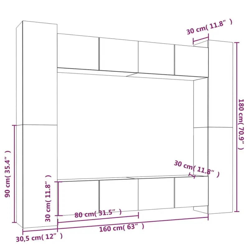 - 4 x televisiemeubel: 30,5 x 30 x 90 cm (B x D x H)