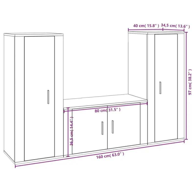 • 1 x tv-meubel: 80 x 34,5 x 40 cm (B x D x H)