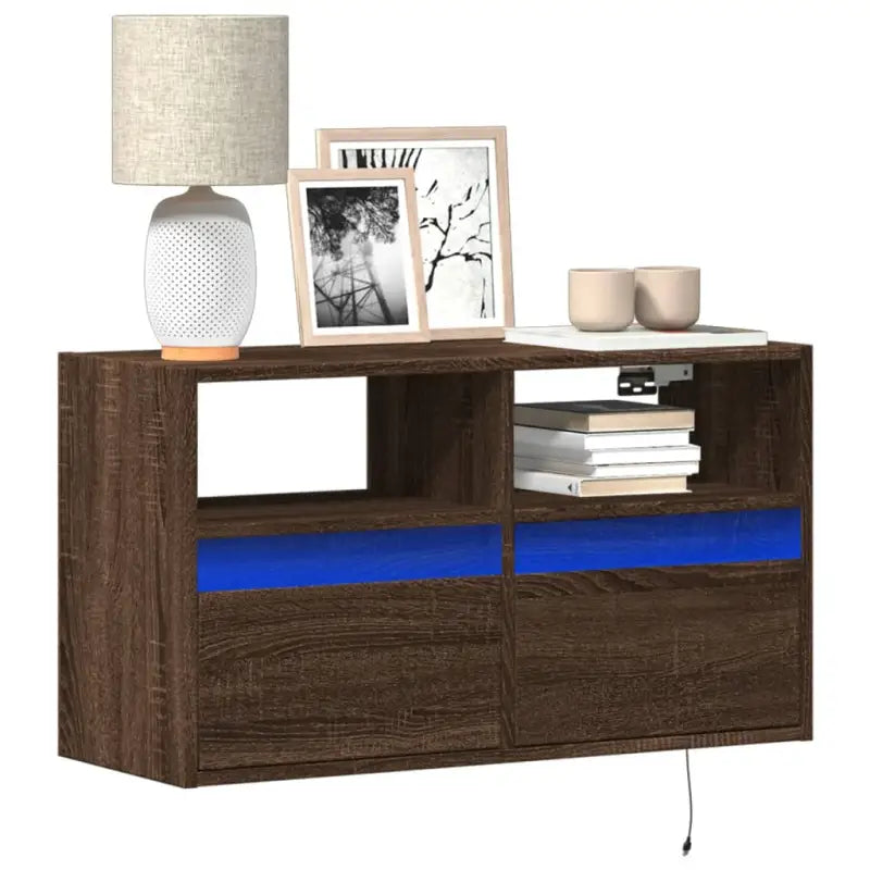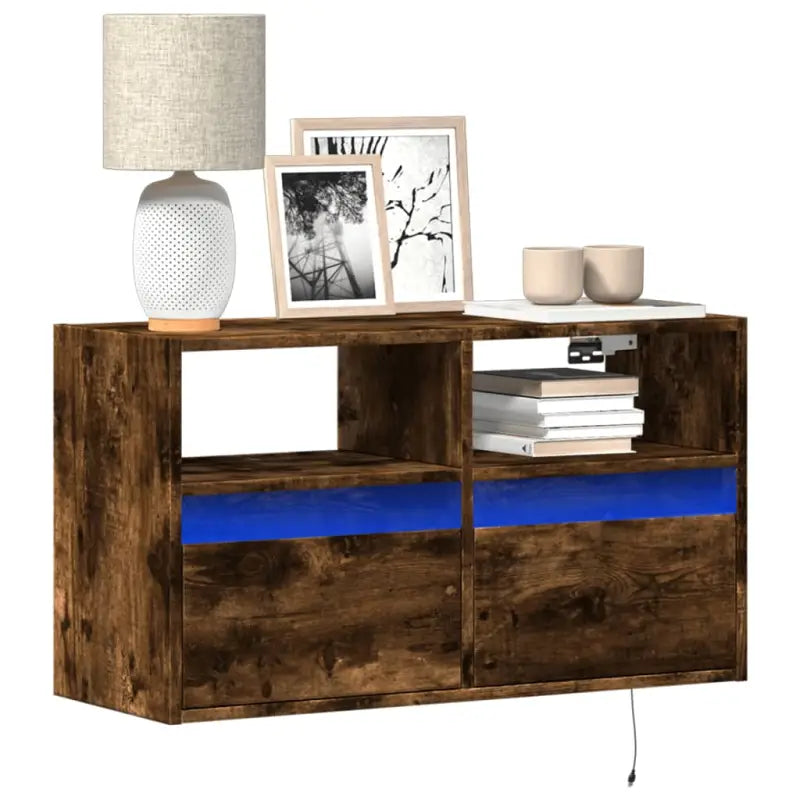 Tv-wandmeubel van bewerkt hout in gerookt eiken voor stabiele opstelling