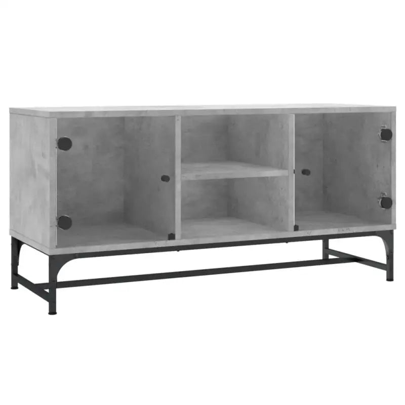 Tv-meubel met glazen deuren en bewerkt hout voor een stijlvolle inrichting