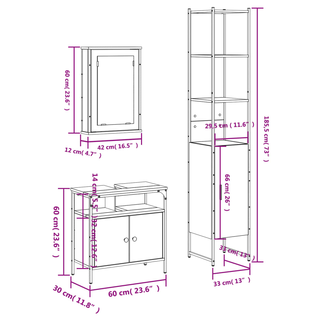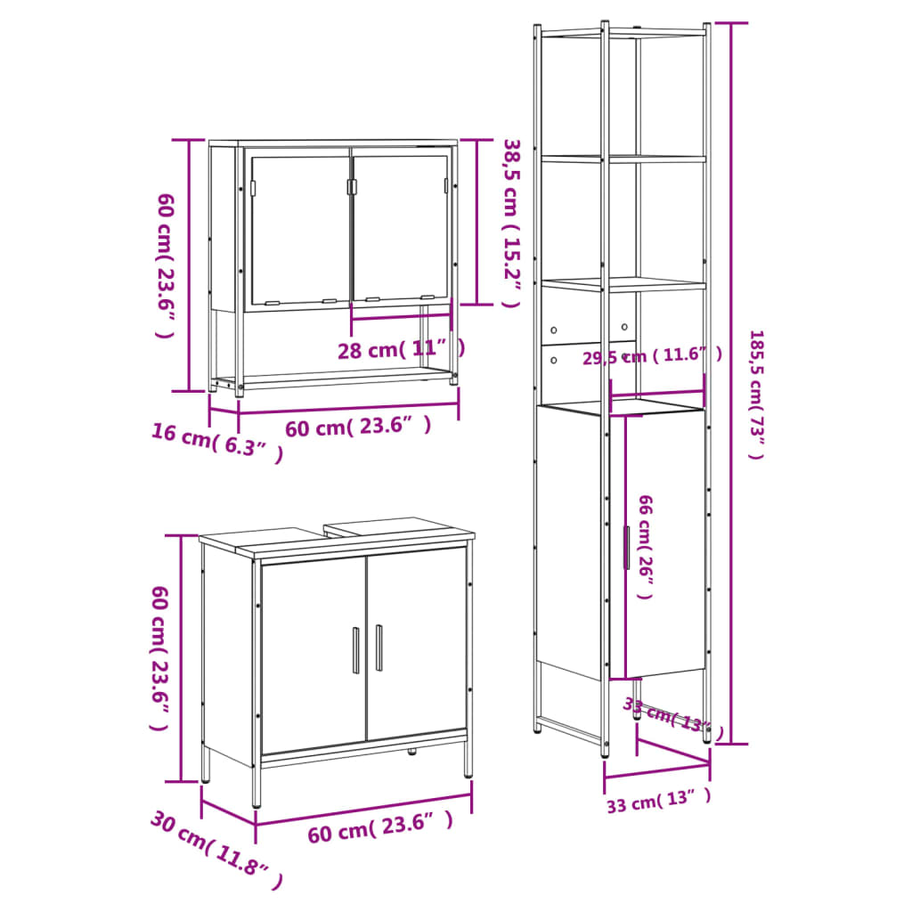 vidaXL 3-delige Dressoirs 60x33x75 cm massief mangohout bruin