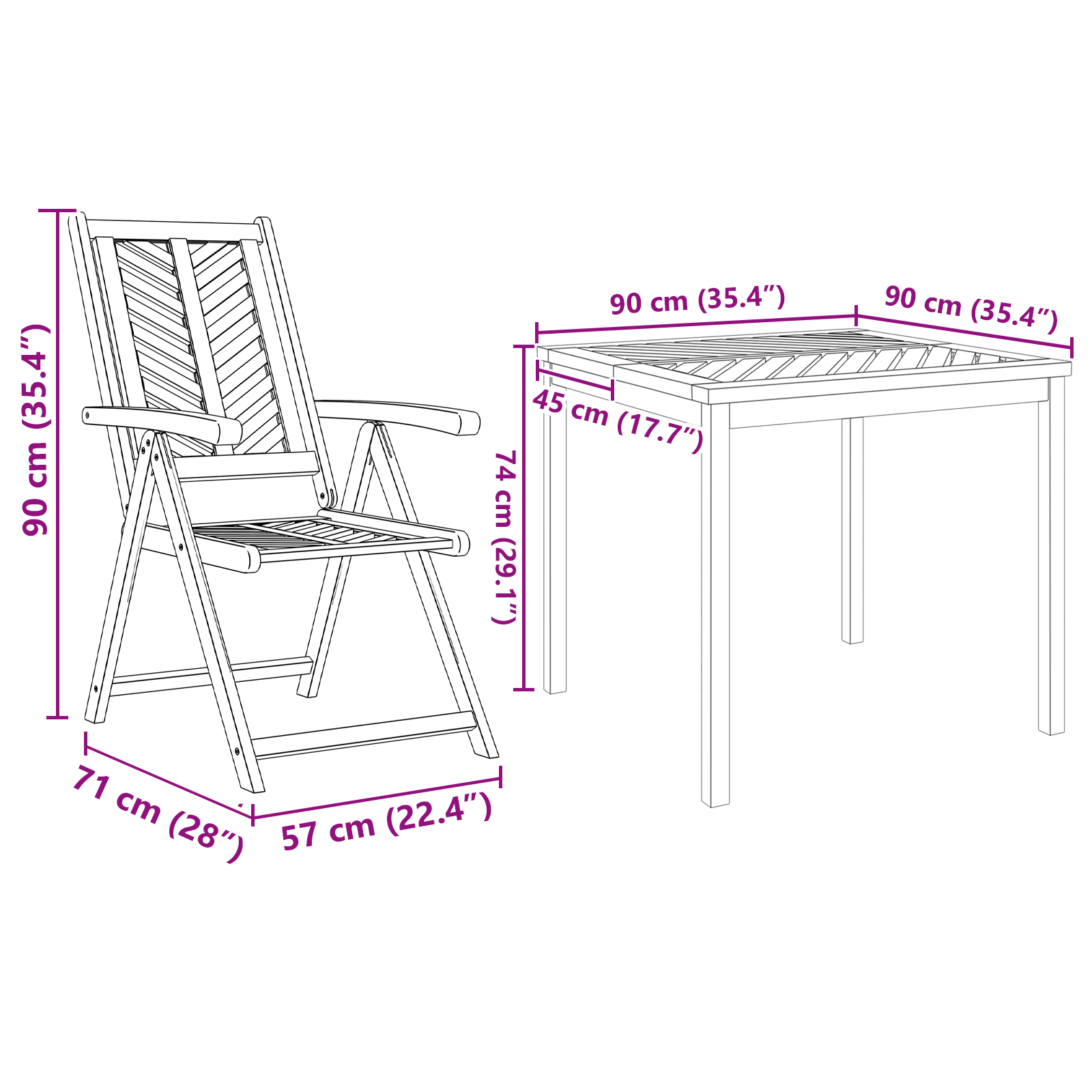 vidaXL 7-delige Tuinset massief acaciahout