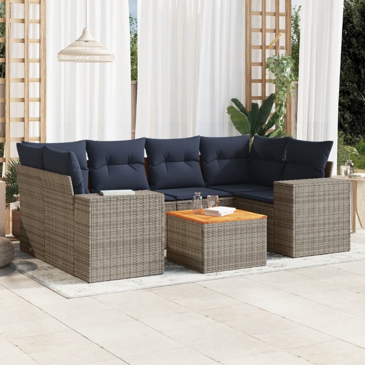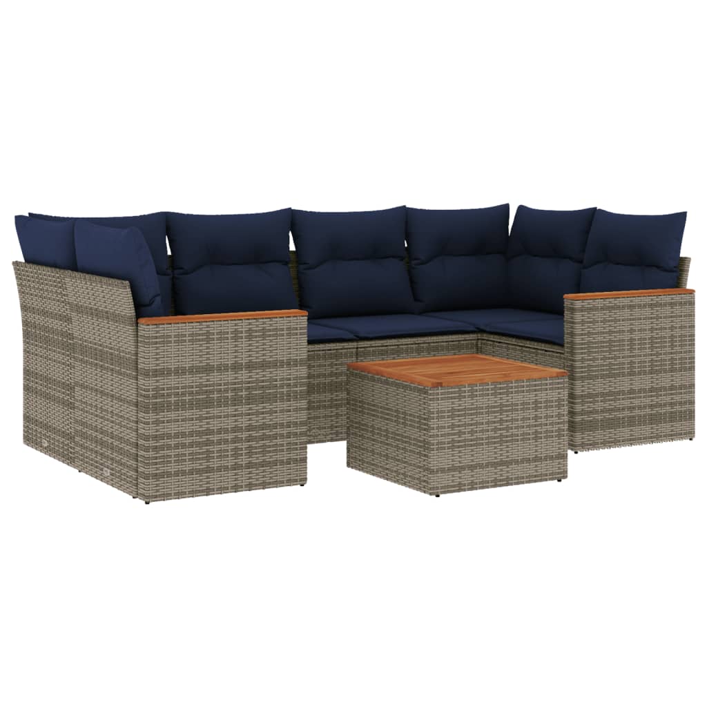 vidaXL 7-delige Tuinset met kussens poly rattan grijs